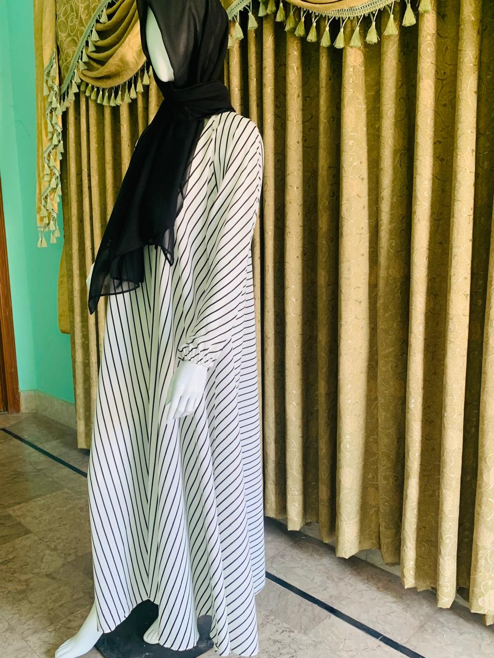 white and Black Front Open Abaya - Occasion: Outdoor - Category: Fashion>Women>Muslim Wear>Outerwear - Material: Georgette